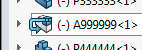 在舊版軟體中,如果您在 FeatureManager(特徵管理員) 設計樹狀結構中調整零組件順序,您必須按下 Alt 來確保零組件不會移入次組合件。 游標形狀的改變讓您更容易確定所拖曳的零組件會移往何處。