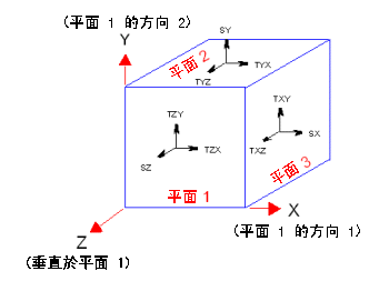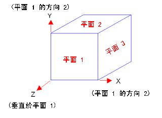 其中 X 方向是平面 1 的方向 1,Y 是平面 1 的方向 2,而 Z 垂直於平面 1。