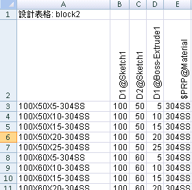 Configuration Publisher」對話方塊隨即出現,並且會在單獨的視窗中開啟設計表格。 由於設計表格具有多列並包含每個模型組態的各個變數值,因此調色盤中會出現一個控制項,用於設計表格中的各個變數。
