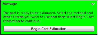 當您計算零件的成本時,Costing 不會立即執行,因此您可以在執行分析之前變更方法及其他設定。 當您準備好,您可以按一下開始成本估計,成本即會自動更新。 在舊版軟體中,您必須等候 Costing 處理零件之後,才能變更方法及其他計算。