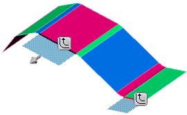 Prodloužené povrchy můžete rozšířit na tečné plochy kliknutím na popis Pokračovat , který se zobrazí, jen když vyberete hrany.