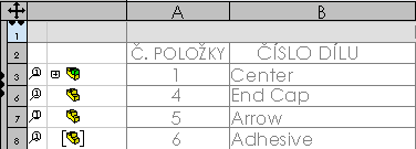 na levé straně kusovníku zobrazte strukturu sestavy.