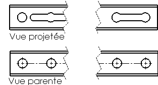 Les lignes de cassure qui dépassent l'arête de la pièce sont imprimées dans les vues interrompues. |