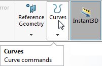 Après avoir ouvert une pièce ou un assemblage, commencez à saisir courbe passant par des points xyzdans Rechercher des commandes. Dès que vous saisissez cou, la liste des résultats affiche uniquement les commandes comportant la séquence de caractères « cou » et Courbe passant par des points XYZ apparaît en haut de la liste de résultats.
