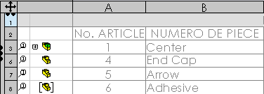 à gauche de la nomenclature pour afficher la structure de l'assemblage.