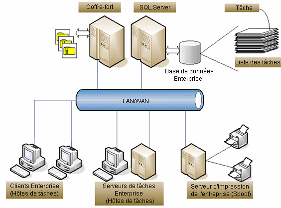 Un hôte de tâches peut être un ordinateur client SOLIDWORKS PDM utilisé pour le travail quotidien ou un poste de travail ou un serveur réservé.