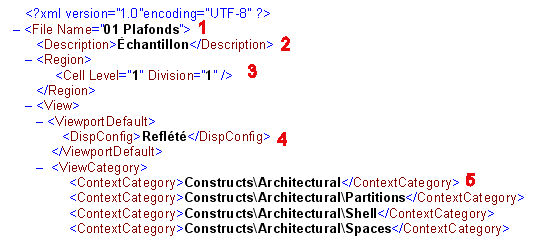 Le mappage d'attribut File/View/ViewCategory/ContextCategory (Fichier/Vue/CatégorieVue/CatégorieContexte) rend une liste Constructs\Architectural, Constructs\Architectural\Partitions, Constructs\Architectural\Shell (Constructions\Architecture, Constructions\Architecture\Partitions Constructions\Architecture\Enveloppe), etc. |