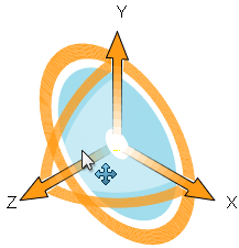 Die Ringe und Flügel werden angezeigt, wenn die Rotation um die -, und das Ziehen entlang der Flügelebenen möglich ist.