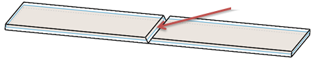 Mittelflächenschalen aus Blechplatten mit einer Lücke aufgrund des Schweißens. Ein verbundener Kontakt wird für das Paar von parallelen Schalenkanten innerhalb des festgelegten Abstands erkannt. |