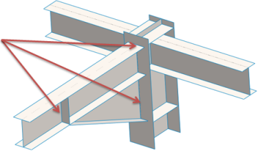 Ein verbundener Kontakt wird zwischen den Schalenkanten (von Knotenblechen und Balken) und den Schalenflächen der Balken erkannt. |
