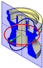 In der Schnittansichtstriade können Sie mit 180º-Ringen die ausgewählte Ebene oder eine Referenzebene drehen: