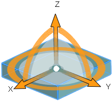 Der Ring, der die X- und Y-Pfeile enthält, wird als vollständiger Kreis angezeigt. Verwenden Sie ihn, um die ausgewählte Ebene zu drehen: