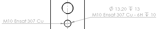 Das Werkzeug Intelligente Bemaßung erstellt eine einfache Gewindebeschreibung, wenn Sie die Gewindedarstellung einer Gewindebohrung auswählen.