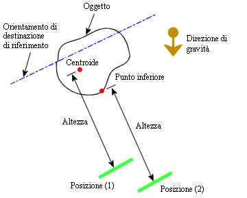 L'altezza specificata è la distanza minore tra il corpo e il suolo planare rigido. Il punto più vicino al suolo planare rigido è il primo a colpire il suolo poiché il corpo viaggia in direzione della gravità.