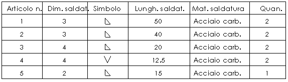 La tabella di saldatura si aggiorna in maniera dinamica quando cambiano i corrispondenti cordoni o simboli di saldatura. Se si aggiorna un valore nella tabella di saldatura e si mantiene il legame con il cordone o il simbolo di saldatura, quest'ultimo si aggiorna nel modello.