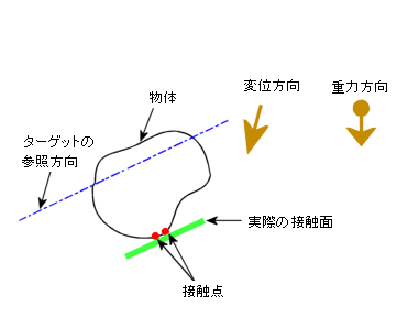 ターゲット平面との衝撃の瞬間におけるモデルの落下速度の方向と加速度を指定します。