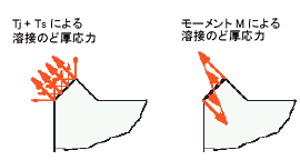溶接のど厚における合計曲げモーメントは、ジョイント荷重の非対称性によります: