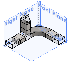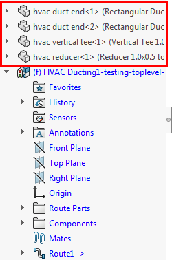 ルーティング構成部品がルート サブアセンブリを編集していないときに追加されると、部品はトップ レベル アセンブリの構成部品として追加されます。 トップ レベル アセンブリの構成部品は、ルートの編集中に移動することはできません。 ルート 3D スケッチの寸法付けは、ルート構成部品の配置には影響を与えませんが、特定のルート パスを定義する場合には使用できます。