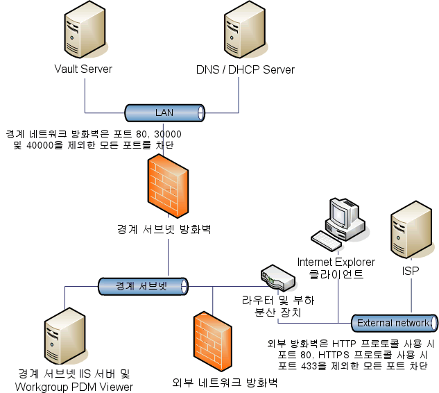 경계 네트워크에서 Workgroup PDM Viewer를 위한 네트워크 구성