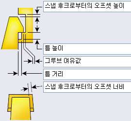 스냅 후크 그루브 (체결 피처 도구 모음) 또는 삽입 > 체결 피처 > 스냅 후크 그루브을(를) 클릭합니다.