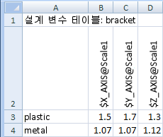 설계 변수 테이블