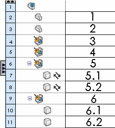 합치기를 실행 취소하려면, 합쳐진 어셈블리 구조 항목의 셀을 오른쪽 클릭하고 동일한 부품 합치기를 선택 취소합니다.