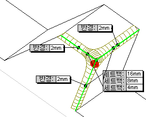 모든 모서리에 대해 일정한 세트백 거리 (12mm) 모든 모서리에 대해 다른 세트백 거리 (4mm, 8mm 및 12mm)