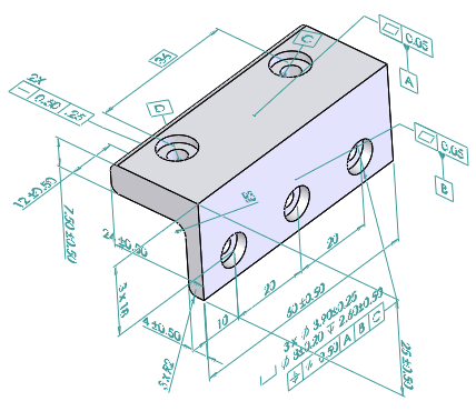 ASME Y14.41-2003과 ISO 16792:2006 필수사항에 따르면 파트용 DimXpert란 파트에 치수와 공차를 부가하는데 사용하는 도구 세트입니다. 그러면 TolAnalyst와 함께 공차를 사용해서 어셈블리에서 스택 분석 작업을 하거나 다운스트림 CAM, 다른 공차 분석, 계측 프로그램 등에 공차를 사용할 수 있습니다.