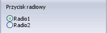 Przyciski radiowe pozwalają na wybranie jednej z dwóch lub trzech uprzednio zdefiniowanych wartości. Można kontrolować które elementy są dostępne w każdym stanie.