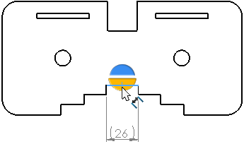 O seletor de dimensão rápida aparece quando você insere dimensões em vistas de desenho. Use o manipulator para colocar dimensões em intervalos uniformemente espaçados. Por exemplo, se você inserir uma dimensão entre duas dimensões, a nova dimensão será espaçada uniformemente entre elas.