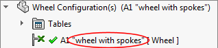 No ConfigurationManager, clique com o botão direito no nome da peça ou montagem, no topo da árvore, e selecione Exibição em árvore, Exibir descrições de configuração.