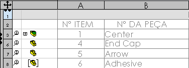 2. Clique nas setas laterais de expansão , do lado esquerdo da BOM, para exibir a estrutura da montagem.