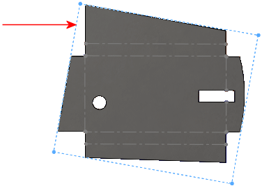 Algumas das propriedades calculadas são baseadas na caixa delimitadora, o menor retângulo que pode conter o padrão plano. Você pode determinar a direção da fibra para determinar o menor retângulo, alinhado com a direção da fibra, que pode conter o padrão plano (consulte PropertyManager de Padrão-Plano).