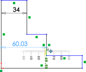 1. Arraste as alças da dimensão para modificar a posição dos contornos do esboço.