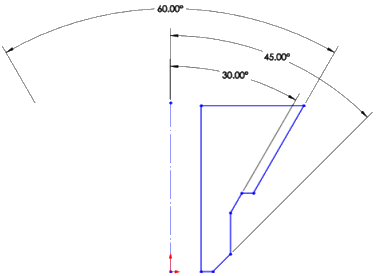 Esse tipo de dimensionamento é útil ao criar esboços para geometria revolucionada que requer várias dimensões angulares ou a exibição de uma dimensão angular completa.