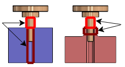 A mesma superfície cilíndrica em cada botão é usada em um posicionamento concêntrico para um bloco.