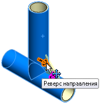 - В PropertyManager для параметра Вспомогательные грани выберите грани цилиндров, между которыми требуется добавить угловое соединение.