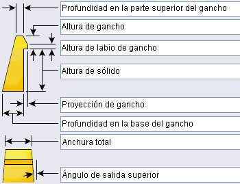 para la parte inferior del gancho y desactiva el cuadro Alto de sólido en Datos de gancho de mosquetón. |