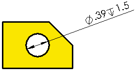 Para estándares distintos de ANSI, muestra una línea indicativa a través del centro, en lugar de en la circunferencia.