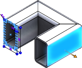Seleccione la cara que va a arrastrar. La flecha de arrastre aparece en la dirección más cercana disponible para arrastrar. Puede mover el sólido de pieza soldada para alargar los sólidos asociados y el croquis guía.
