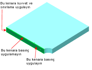Kabuk elemanları dönüş serbestlik derecesine sahip olduğu için, Taşınamaz kısıtlaması (öteleme yok) ile Sabit kısıtlamasını (öteleme ve rotasyon yok) birbirinden ayırt etmeniz gerekir. Ayrıca, Kuvvet PropertyManager'ını kullanarak konsantre momentler uygulayabilirsiniz.