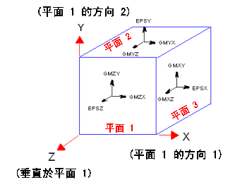 其中 X 方向是平面 1 的方向 1,Y 是平面 1 的方向 2,而 Z 垂直於平面 1。