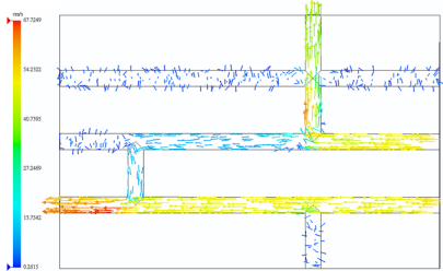 Es ist jetzt eine Lösungsoption für das Kühlungs-Analysemodul verfügbar, die eine Simulation der Kühlkreisläufe mit mehreren Ein- und Auslässen ermöglicht. Alle Seitengänge ohne Einlässe oder Auslässe werden als Sackgassen angesehen. Wählen Sie unter Randbedingungen die Option Feld Kühlmittelfluss aus.