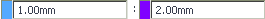A razão é calculada como o quociente dos dois deslocamentos relativos. Neste exemplo, para cada milímetro de deslocamento do primeiro componente posicionado na direção do seu movimento, o segundo componente é deslocado dois milímetros na direção do seu movimento.