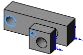 No exemplo abaixo, o furo do lado direito das duas peças tem uma relação concêntrica. Quando você tenta adicionar uma segunda relação concêntrica aos furos em verde à esquerda, o esboço é sobredefinido, pois a distância entre os furos em uma peça não é a mesma entre os furos correspondentes na outra peça.