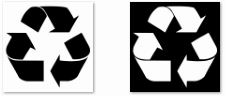 Usa uma imagem em preto e branco para remover seções do decalque. Os itens em branco permanecem no decalque, os em preto são removidos. Por exemplo, as duas imagens a seguir representam um decalque e sua máscara.