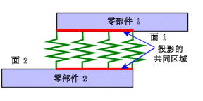 - 弹簧从另一个实体的面上引进到一个实体的面的公共投影区域内。 如果没有公共区域,则软件无法创建弹簧。