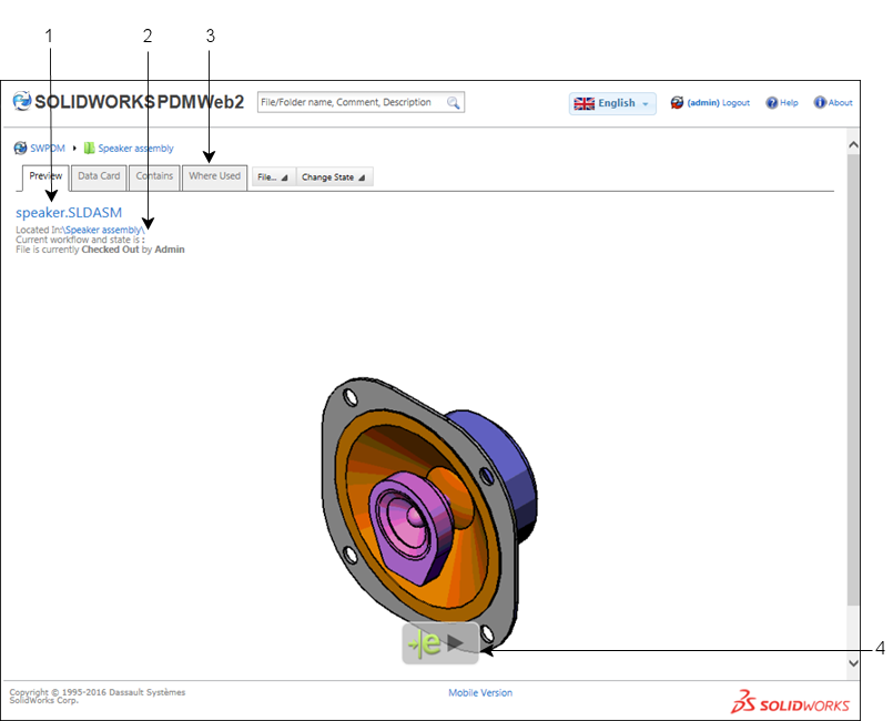 预览页面将显示 SOLIDWORKS 文件的位图,且能够使用 WebGL 查看器开始交互式预览。 其他常用文件类型将转换为与文件类型的本地应用程序相同的 HTML 预览。