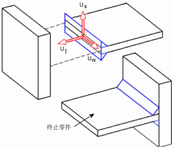 - 焊接接点法向,Uj:轴与终止零件的交叉壳体边线正交,并朝向远离零件的方向。