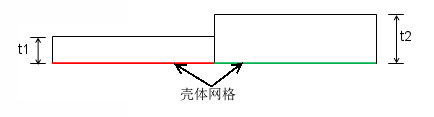 例如,要使用不同厚度对相邻壳体建造模型,如其地面对齐,您可以创建两个壳体定义并应用底面选项以进行偏移。